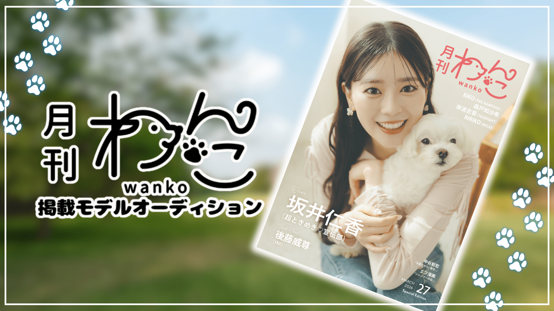 『月刊わんこ』掲載モデルオーディション13~39歳 男女 3月15日 送信完了