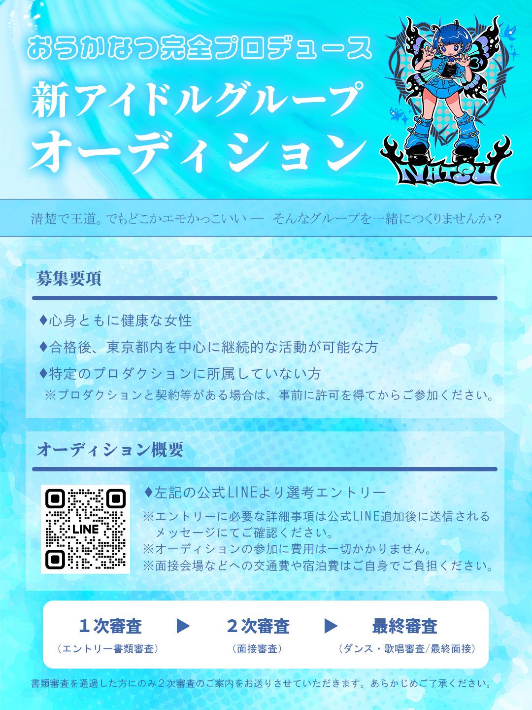アイドルオタクアイドルとして活動していた『おうかなつ』プロデュース 新アイドルグループオーディション13~25歳 女性 5月31日 送信完了