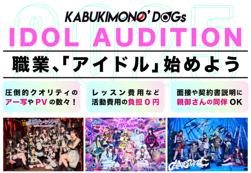 - KABUKIMONO’DOGs 本気で上を目指したいアイドル新メンバー募集16~30歳 女性 11月30日 送信完了