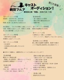 劇団ブルア第8回本公演『歌姫』キャストオーディション20~60歳 男性 2026年2月17日 送信完了