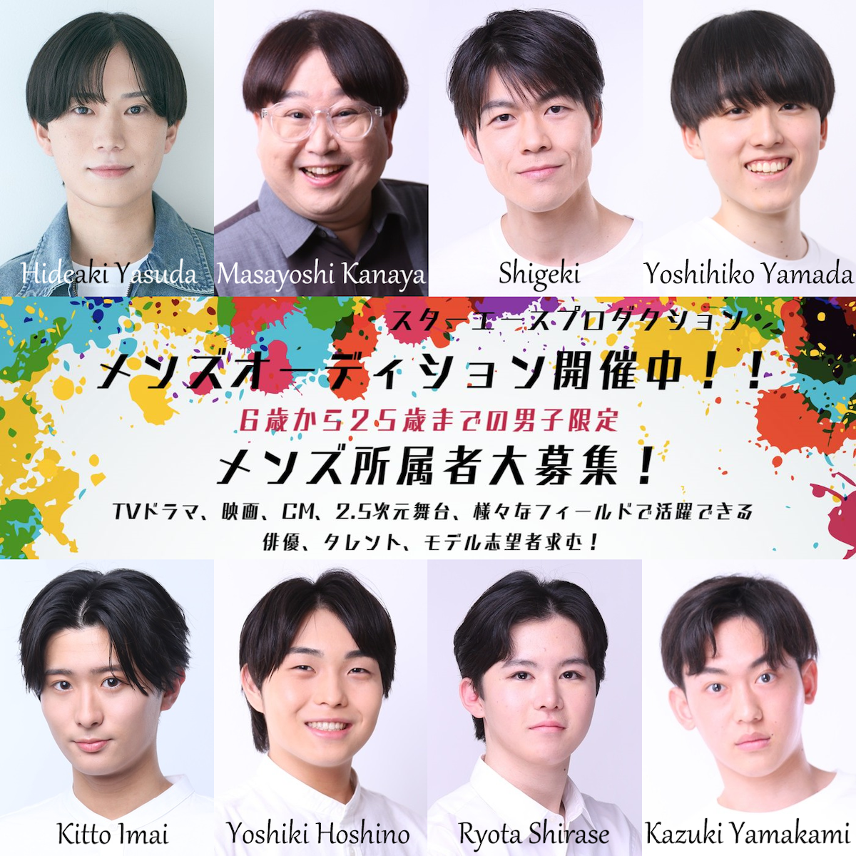 スターエースプロダクション メンズ所属オーディション6~25歳 男性 6月30日 送信完了