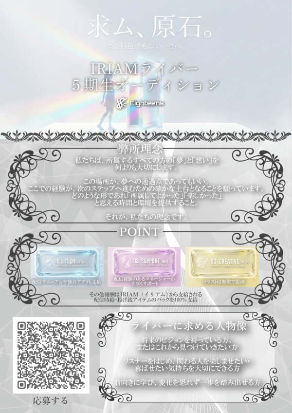 IRIAMライバー5期生募集18~30歳 男女 4月30日 送信完了