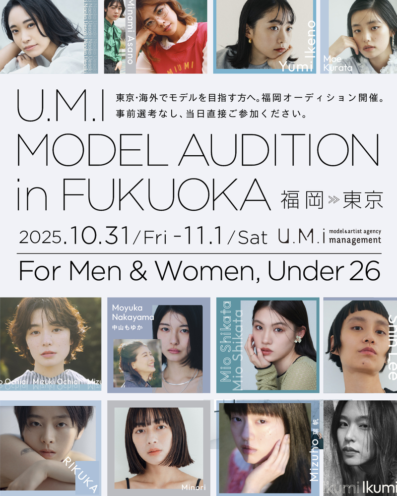 東京を拠点に活動するモデル&クリエイター事務所「u.m.i management」が、福岡県の博多エリアでモデルオーディションを開催している。