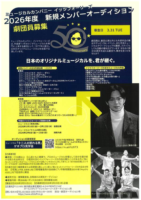 • 2026年度 ミュージカルカンパニー イッツフォーリーズ 劇団員募集