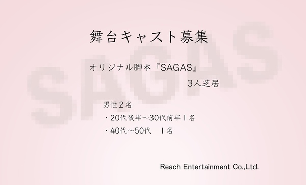 20代後半~60歳の男性。舞台・映像にて出演実績がある方。チケット売上にご協力してくださる方。公演終了まで責任を持って取り組んでいただける方。★締め切り★